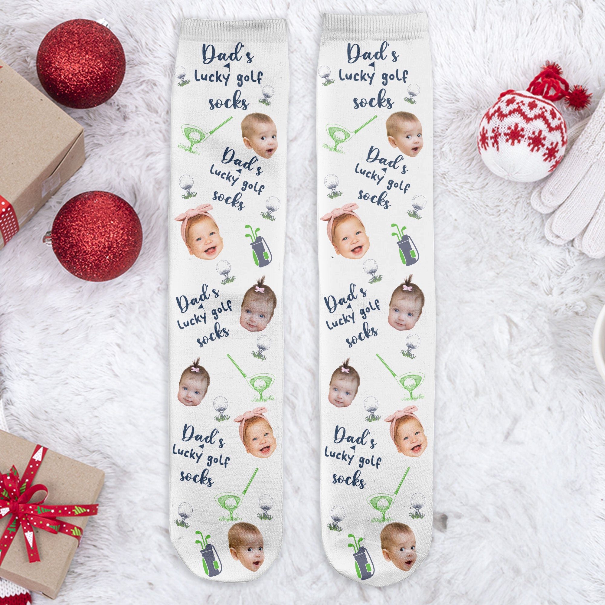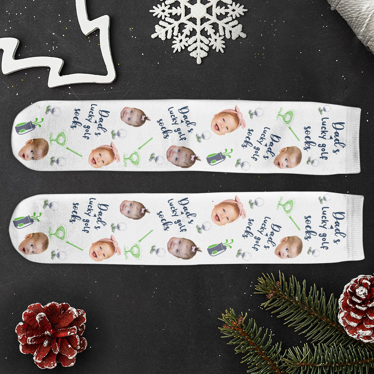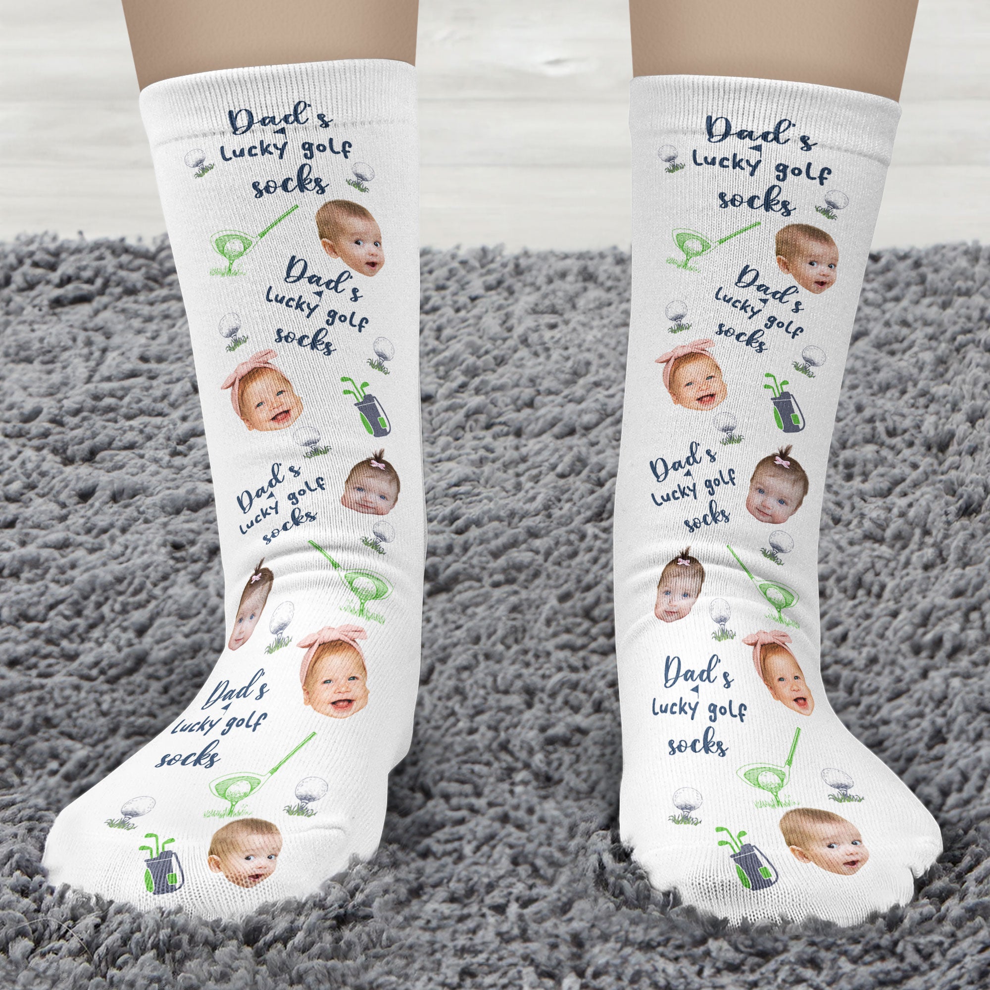 Surprise Dad with custom socks featuring his kids' photos and a fun golf-themed design. Made from soft, breathable fabric, they’re perfect for all-day comfort on and off the course. These one-of-a-kind socks make a great Father’s Day, birthday, or just-because gift for Best dad by par. Simply upload your favorite pictures, and we’ll create a unique keepsake he’ll love. Order now for a gift that scores a hole-in-one!