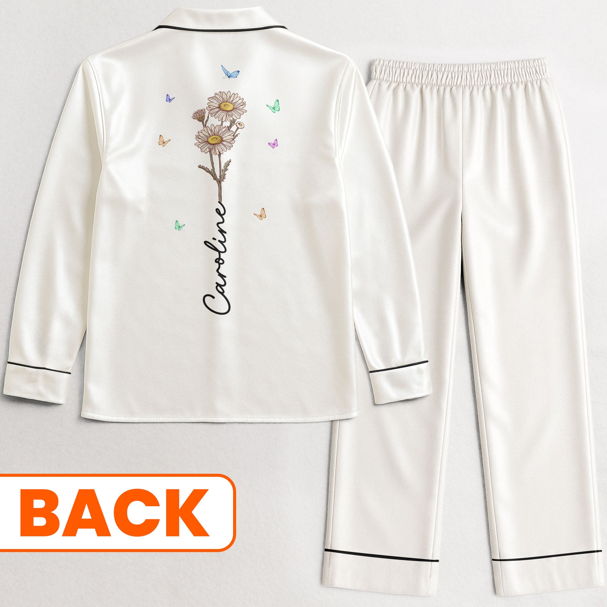 It subtly echoes the uniqueness and individuality of the wearer. The personalized touch on the pajama set makes it a wonderful gift. More than its aesthetic appeal, this Birth Flower Satin Pajama Set holds a gentle reminder of the joy in celebrating oneself. So why wait for a special event? Self-love does not need an occasion. Make every day a celebration, reward yourself, or someone special with our Birth Flower - Personalized Satin Pajama Set.