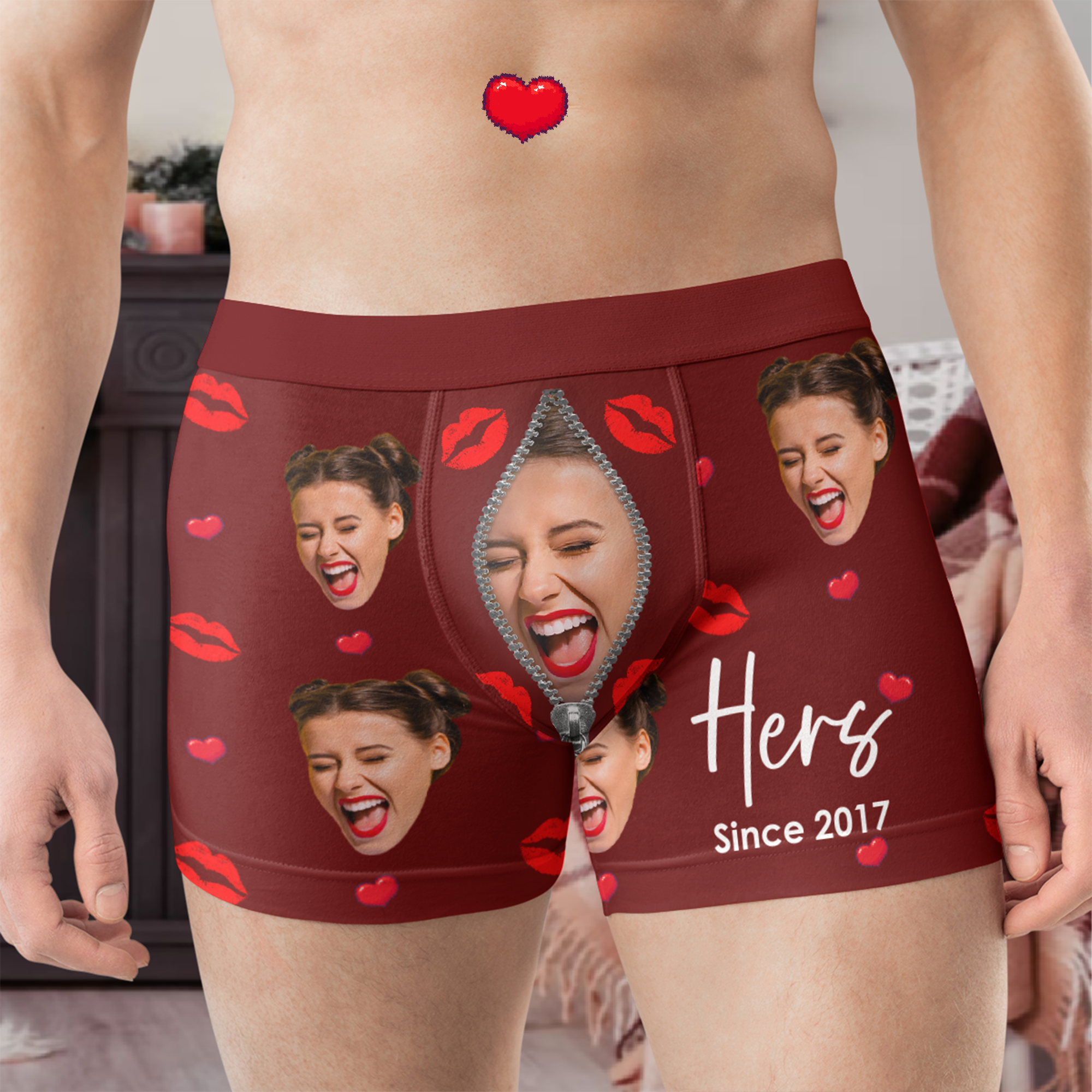 Custom photo matching underwear is the perfect and fun gift to express your love. Choose a style and stick your face on the boxer shorts to create a surprise in a sweet moment. Create a unique and special gift or design for someone special in your life. Whether you're gifting these to your boyfriend or husband, girlfriend or wife these personalized couple matching underwear are sure to bring a smile to their face during the holiday season. Make this Christmas unforgettable with a dash of laughter and a touch of personalization. Perfect Gifts for Newlywed couples, groom, bride, husband, wife, boyfriend, girlfriend, simply upload a photo of a person or a pet to get the ideal souvenir underwear to give to your soulmate or partner, lover on birthday, anniversary, Father's Day, Mother's Day, Valentine's Day, Thanksgiving, Halloween, Christmas, or any other holiday. They will remember you every time they wear these amusing boxer briefs, and can you imagine how happy-go-lucky they will be?