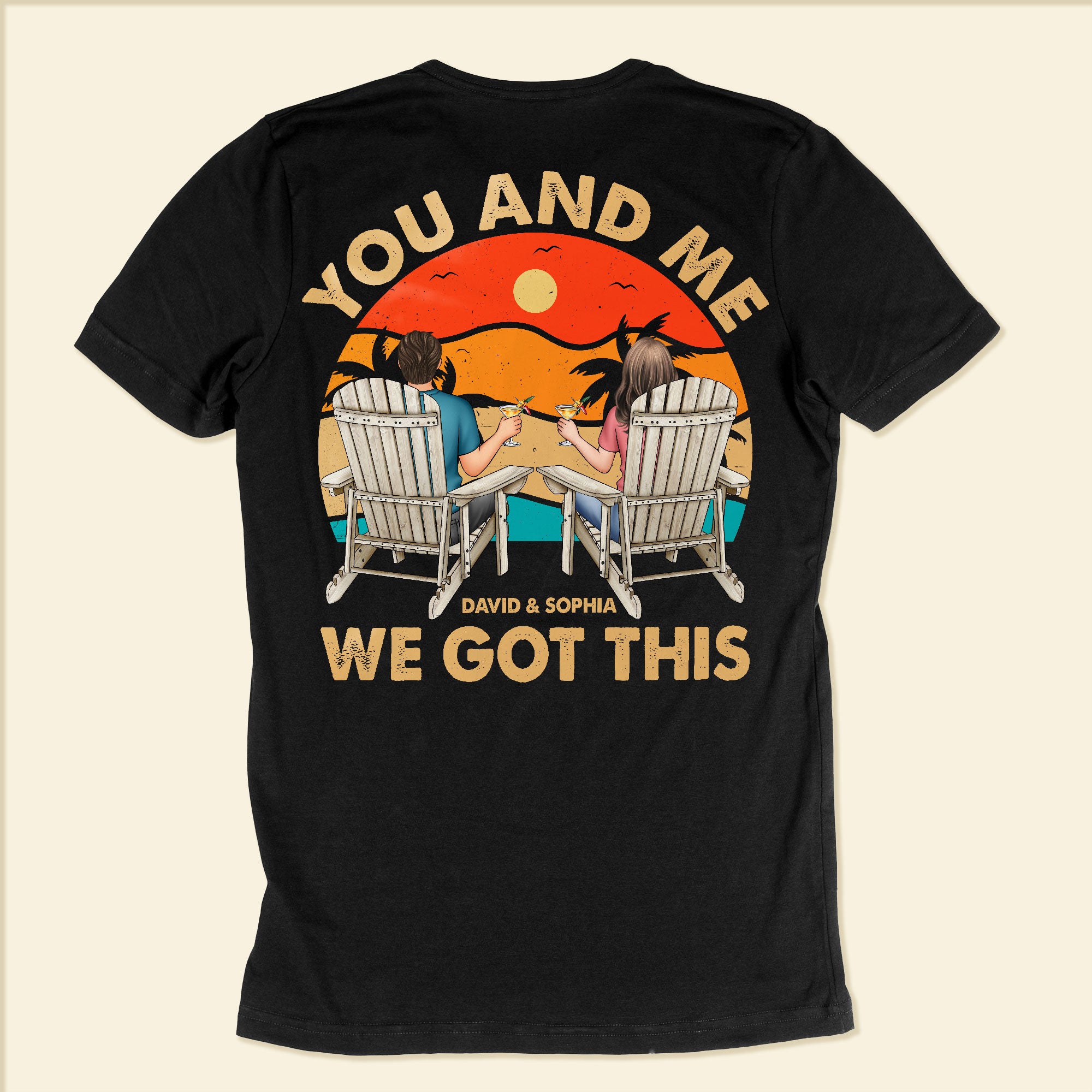 Introducing our Personalized Back Printed Shirt, the perfect way to celebrate your love and unity with matching couple shirts! These shirts feature the heartfelt message, 'You and me, we got this,' and can be customized with characters that resemble you and your partner.
