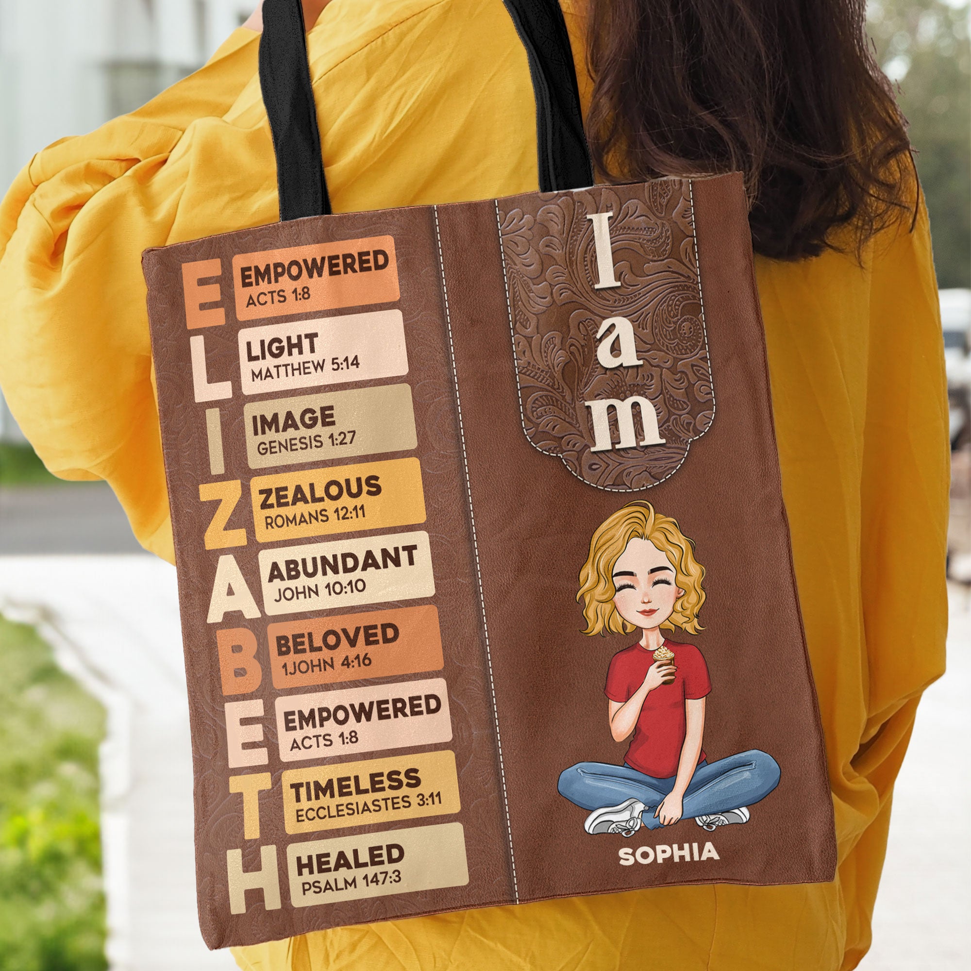 Treat yourself to our Personalized Tote Bag featuring empowering 'I Am' affirmations! This stylish and functional tote is perfect for carrying your essentials while reminding you of your strength and individuality. Customize it with your favorite affirmation or your name to create a unique self-gift that inspires confidence every day. Made from durable materials, this tote is perfect for shopping, work, or everyday use. Whether you're running errands or heading to the gym, this personalized tote bag combines practicality with a positive message, making it a wonderful addition to your collection or a thoughtful gift for yourself!