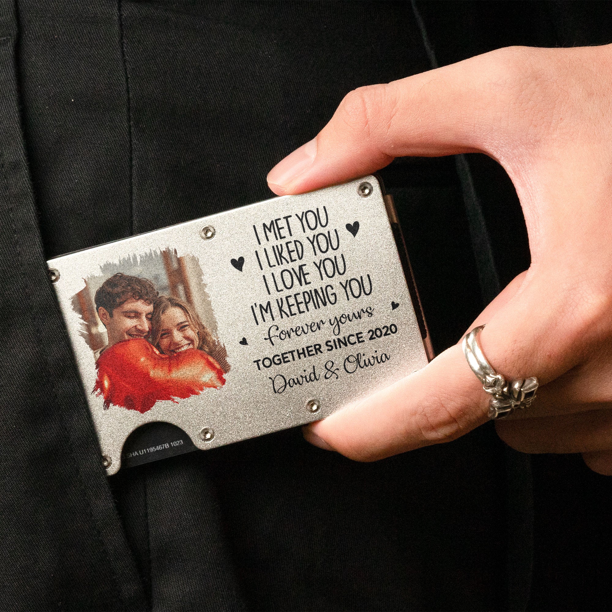 Surprise your partner with a unique metal card holder that celebrates your love story! This stylish accessory features a photo upload option, allowing you to personalize it with a cherished memory. Perfect for couples, it showcases the heartfelt message. It's captures the essence of your relationship and serves as a daily reminder of your commitment. Crafted from durable metal, this card holder is not only practical for everyday use but also a sentimental keepsake. Ideal for anniversaries, birthdays, or just because, this metal card holder is a beautiful way to honor your journey together and keep your love close at hand!